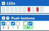 The following figure shows how the code above sets LEDs based upon the buttons pushed.
