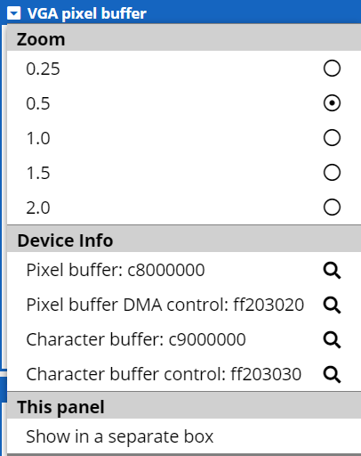 The CPUlator Computer System Simulator has a number of programmable simulated devices based upon the DE1-SoC computer board. The simulated devices appear in the Devices window: